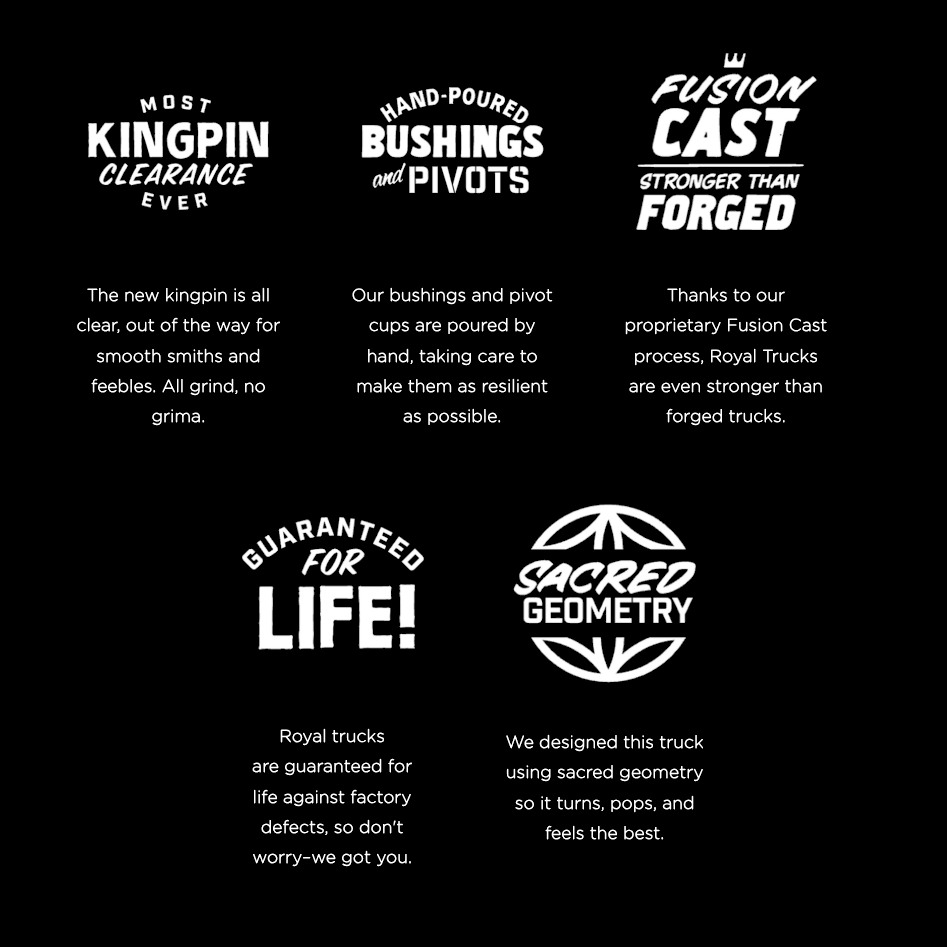 - Thanks to our proprietary Fusion Cast process, Royal Trucks are even stronger than forged trucks.
