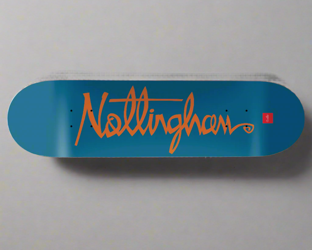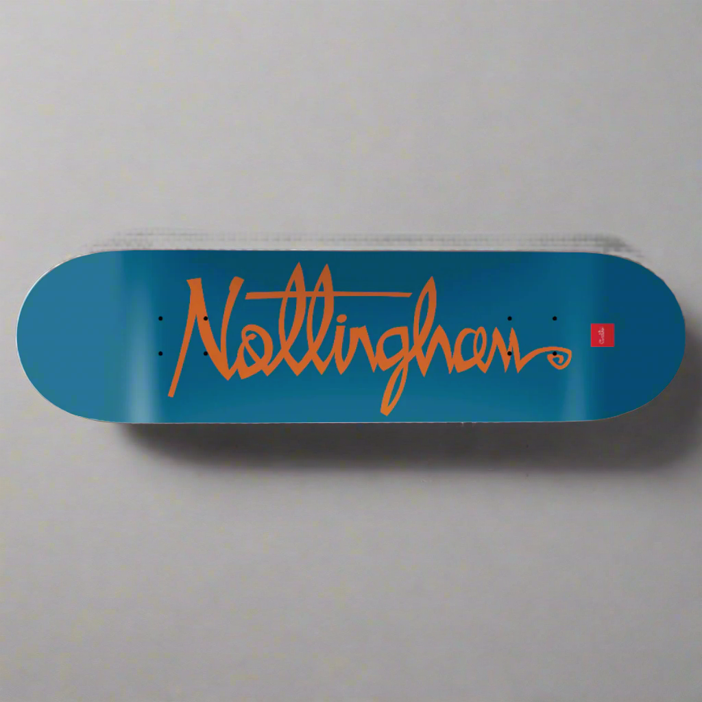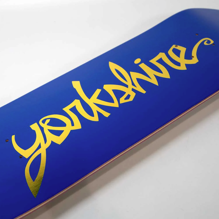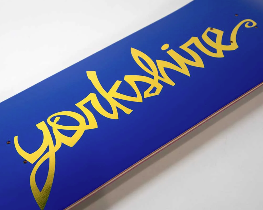 Welcome Skate Store, Leeds. Blue with Gold foil script inspired by Cadburys chocolate which also originates from the Yorkshire county.