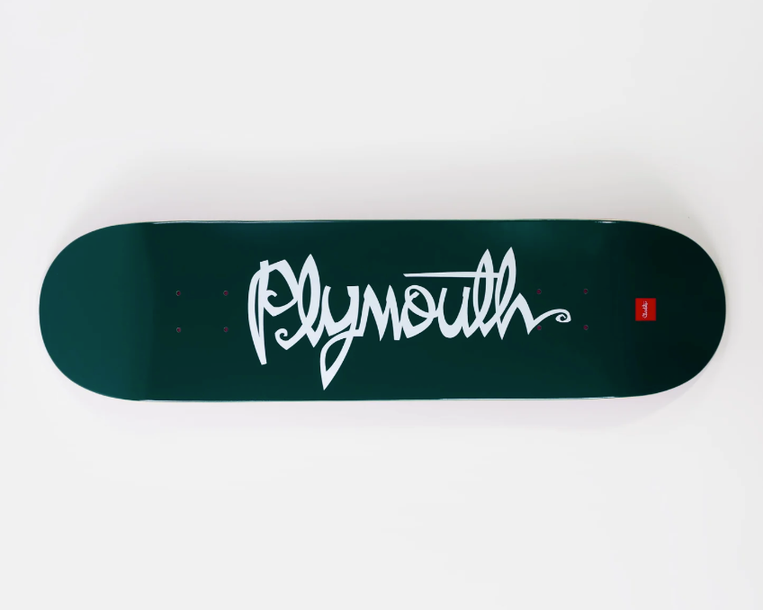 Prime Deluxe Store & skatepark, Plymouth, Devon. Matte Green with white script, inspired by Plymouth Argyle FC.