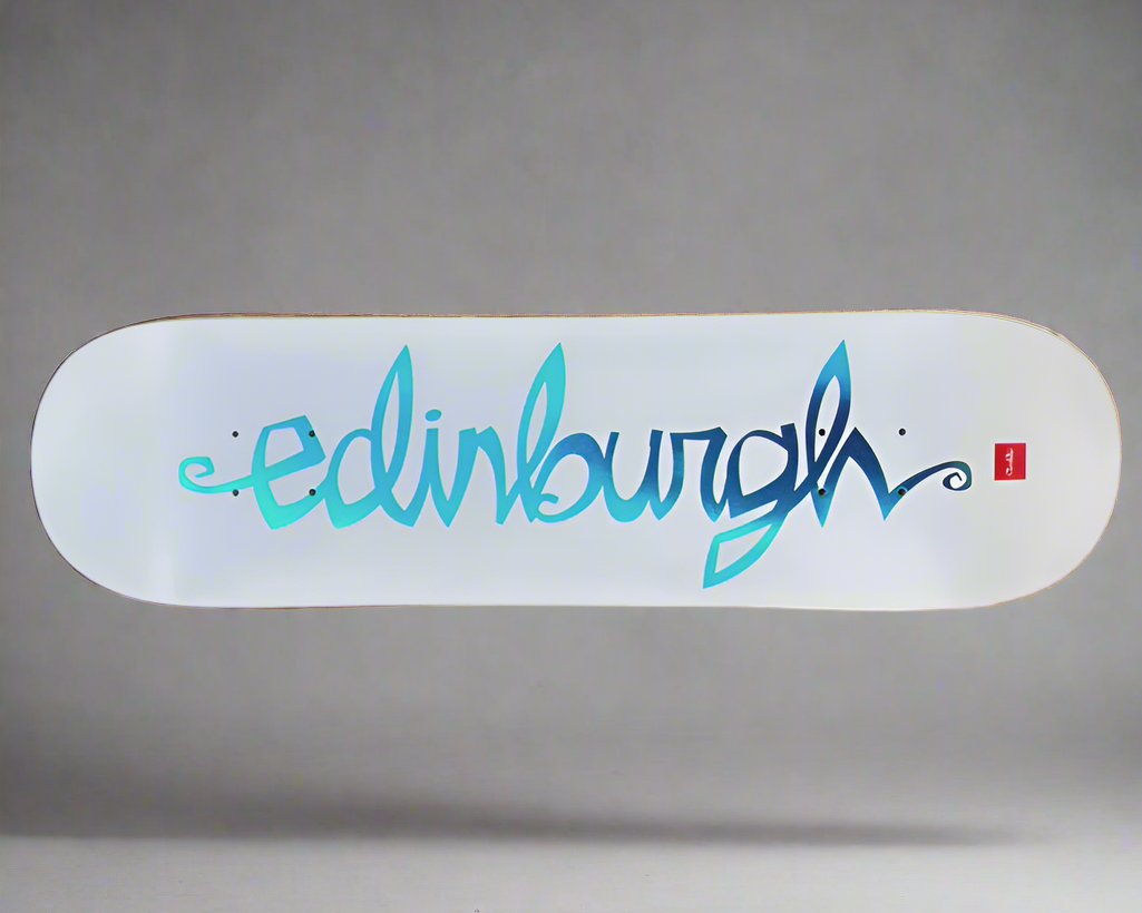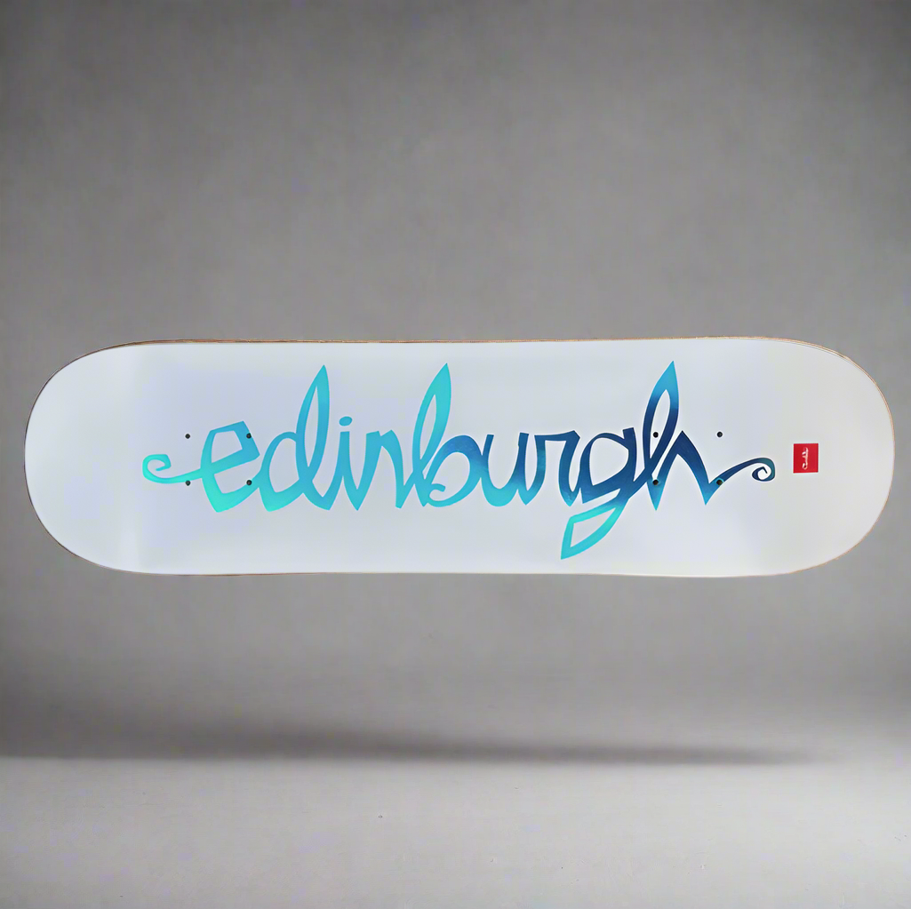 Focus Skateboard shop, Established 2001 in Edinburgh, Scotland. White with Blue Foil. Decks and Apparel available.