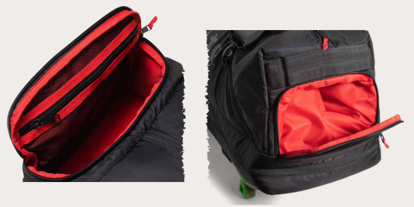 - INTERNAL SKATEBOARD COMPARTMENT CAPABLE OF HOLDING COMPLETE SKATEBOARD, AND/ OR MULTIPLE DECKS
